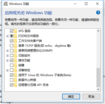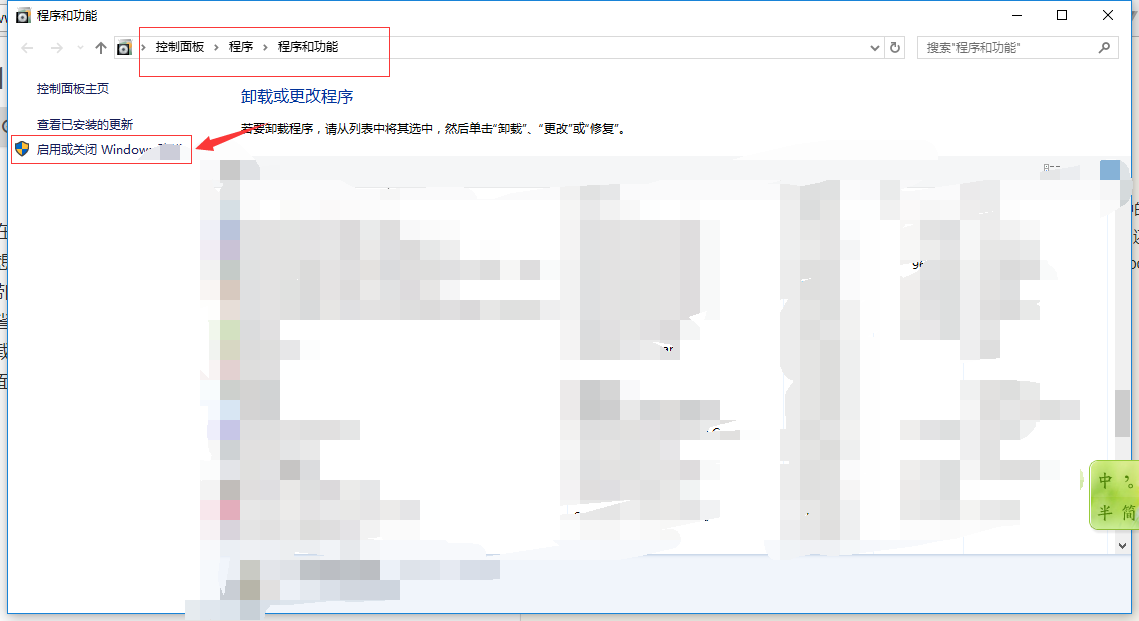 3.选择启动或关闭windows功能,找到适用于Linux的windows子系统