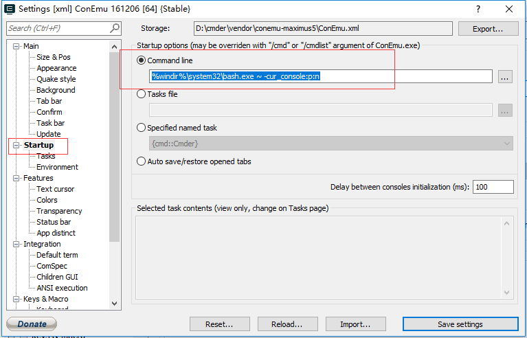 配置%windir%\system32\bash.exe ~ -cur_console:p:n