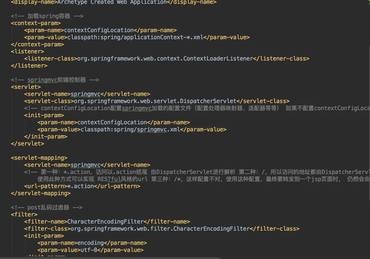 大部分工作完成了,现在还需要在web.xml中加载spring容器和springmvc的前端控制器等。