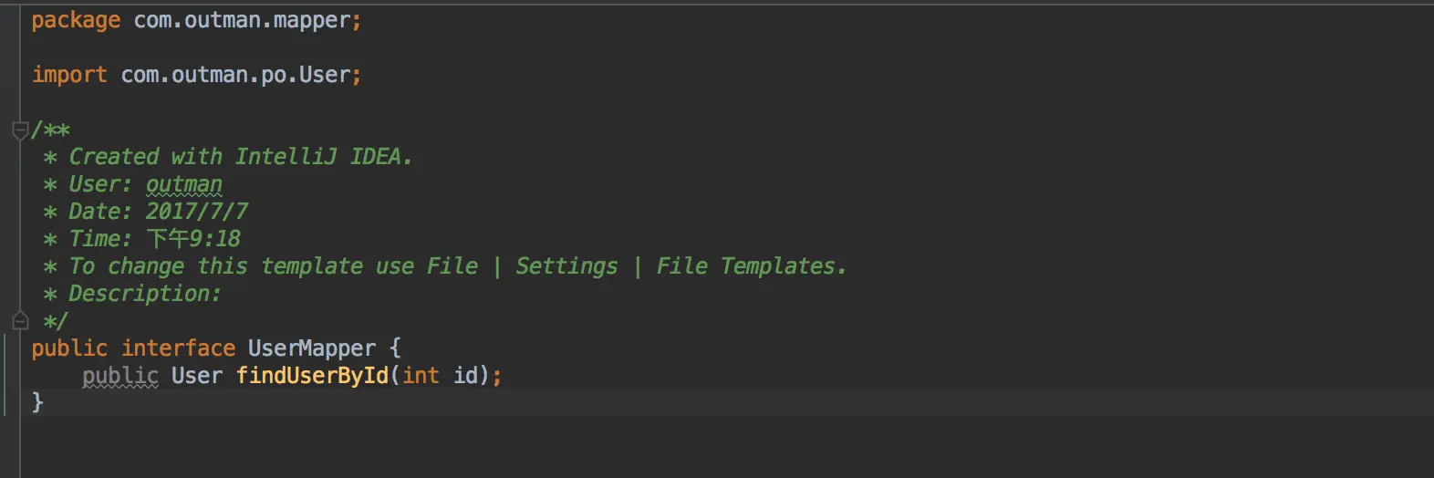 接下来新增pojo类和mappper接口,一般通过逆向工程来生成。这里我们只做个测试,所以根据数据库字段手动新建pojo类User.java,在mapper包下新建接口UserMapper,同时也在mybatis目录下的mapper目录新建UserMapper.xml。