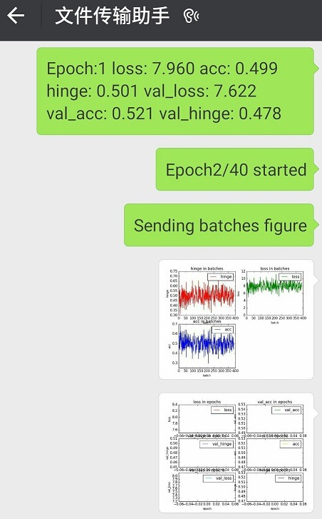 - 实时监控:在每个epoch结束后,自动发送本epoch训练信息以及两张分别代表所有batch和epoch信息的图表至文件传输助手。<img src="https://pic2.zhimg.com/v2-831242df7b0e827349b989f3544ec741_b.jpg" data-rawwidth="452" data-rawheight="727" class="origin_image zh-lightbox-thumb" width="452" data-original="https://pic2.zhimg.com/v2-831242df7b0e827349b989f3544ec741_r.jpg">