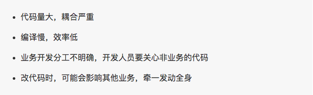 代码质量与规范程度明显提高,高内聚、低耦合。业务职责分明,单元测试也更好写。如果业务拆分做得好,可以一个业务一个单独工程编译,不仅大幅提高编译速度,而且业务代码还可以回滚、版本发布等。