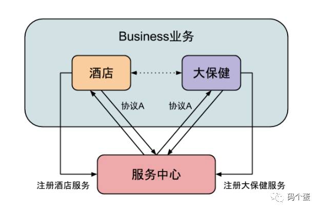 如果其他业务需要获取大保健数据,首先大保健业务要注册大保健服务到服务中心,其他业务才可以通过协议调用这个服务。