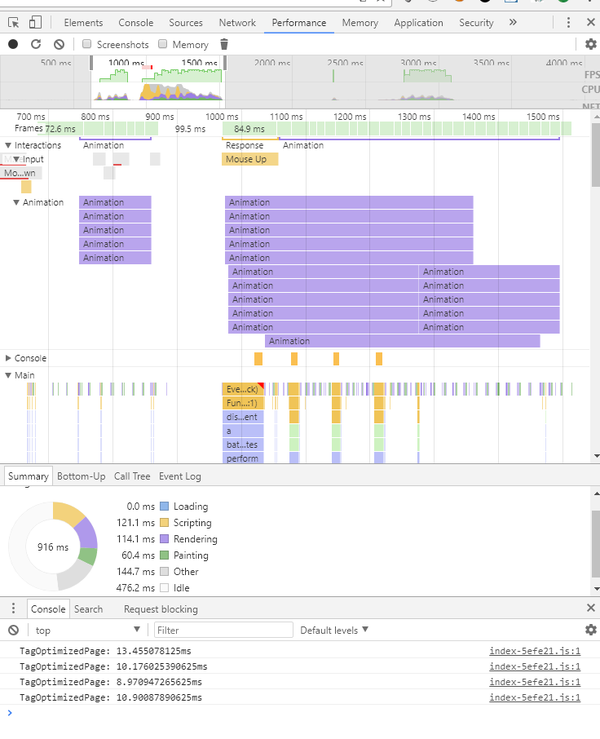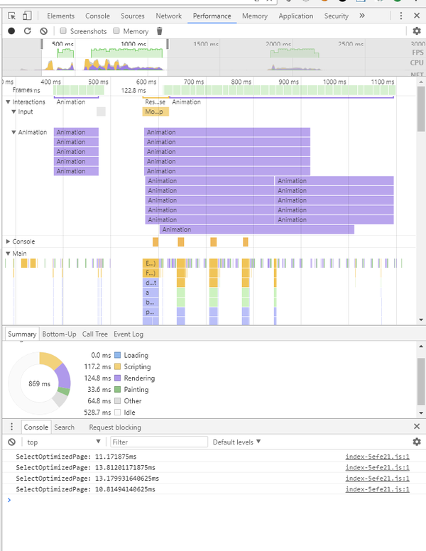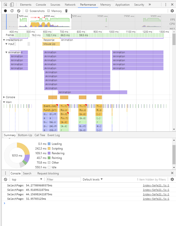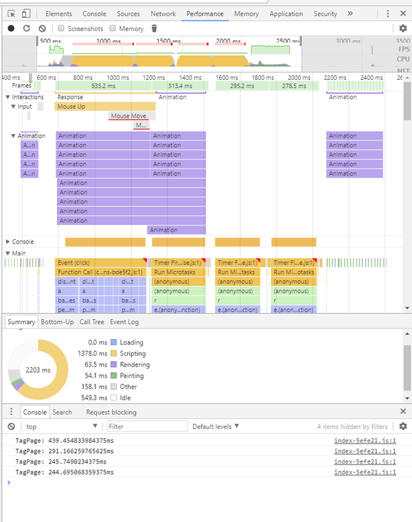 对比发现,Rendering 减少为 1445ms ,实际体验一下勉强可以接受。而动画效果并不是特别显眼,关闭动画并不会引起用户的注意。