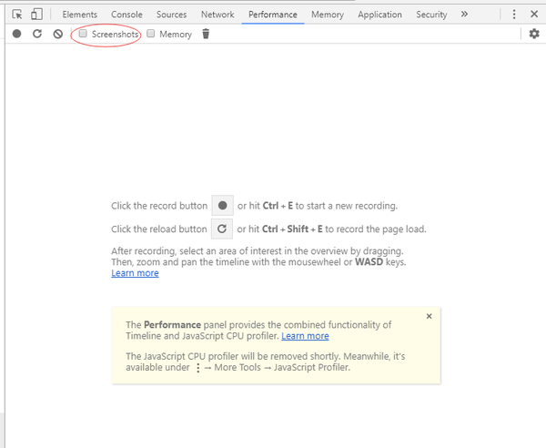 注:图例中黄色的 Scripting 指的是 js 运行时间;紫色的 Rendering 指的是计算页面元素之间的关系的时间,即渲染时间;绿色的 Painting 是绘制时间,即图像显示出来的时间。 在测试中,Scripting 时间太长通常是 React 的 diff 过程耗时较多,Rendering 时间太长则是 Dom 操作太多。 开启 performance 面板会消耗大量资源 具体使用方法自行搜索