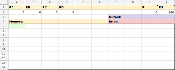 虚拟机有 100 个单元的内存区域,索引为 0-99,每个单元格都可以包含一个指令或一个整数值。