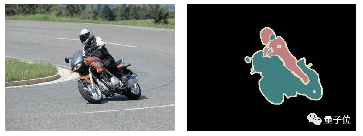 该模型不仅要识别出摩托车和驾驶者,还要标出每个对象的边界。因此,与分类目的不同,相关模型要具有像素级的密集预测能力。