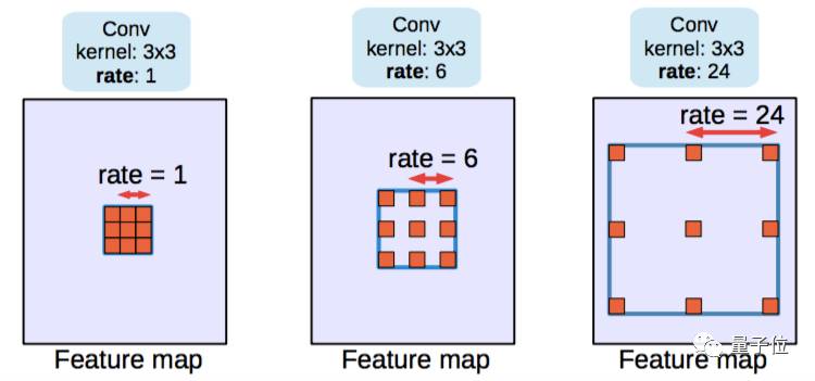 在接下来将提到的DeepLab中,空洞卷积被称为多孔卷积(atrous convolution)。