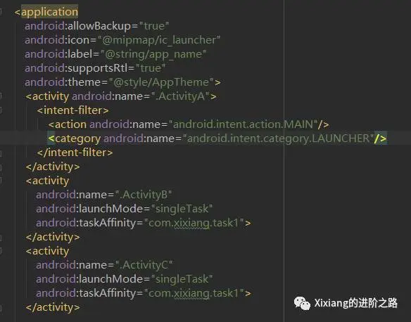 在启动模式中多次提到Activity运行的栈,什么是Activity所需要的任务栈呢?TaskAffinity这个参数标识了一个Activity所需要的任务栈的名字,默认情况所有Activity所需任务栈的名字是应用的包名。我们可以为每个Activity指定特定的任务栈,但这个值不能和包名相同,否则相当于没有指定。