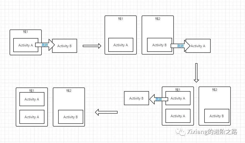 Activity A跳转至activity B,然后再次打开Activity A,然后再次打开Activity B, A--B--A--B