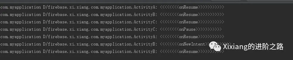 注意:新启动的activity不会执行onCreate、onStart方法,如果新启动的activity没有位于栈顶,那么新的activity仍会重新创建。
