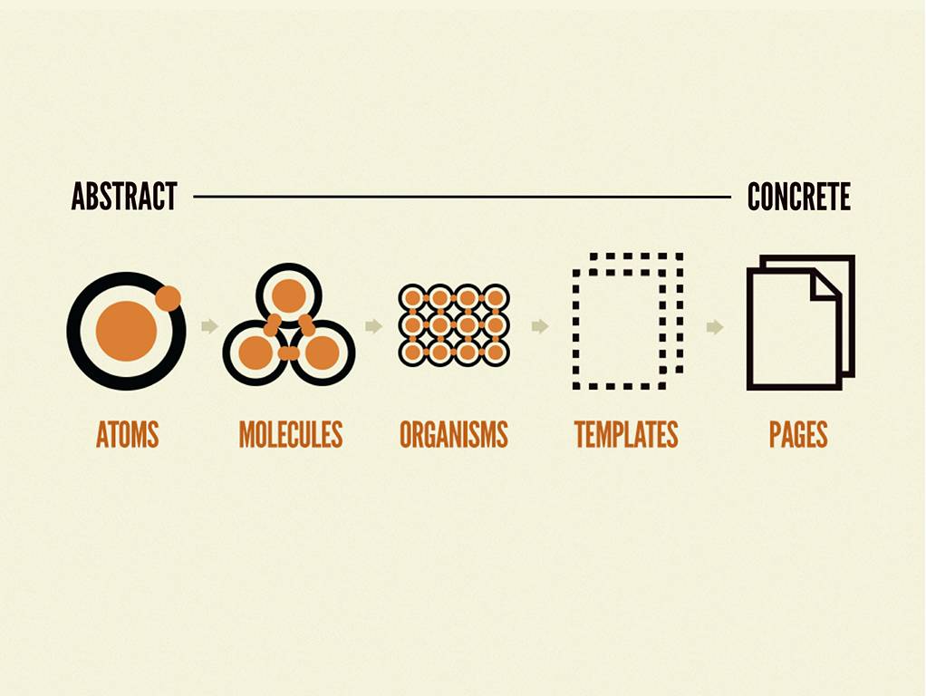 原子设计由原子、分子、生物体、模板和页面共同协作以创造出更有效的用户界面系统的一种设计方法。
