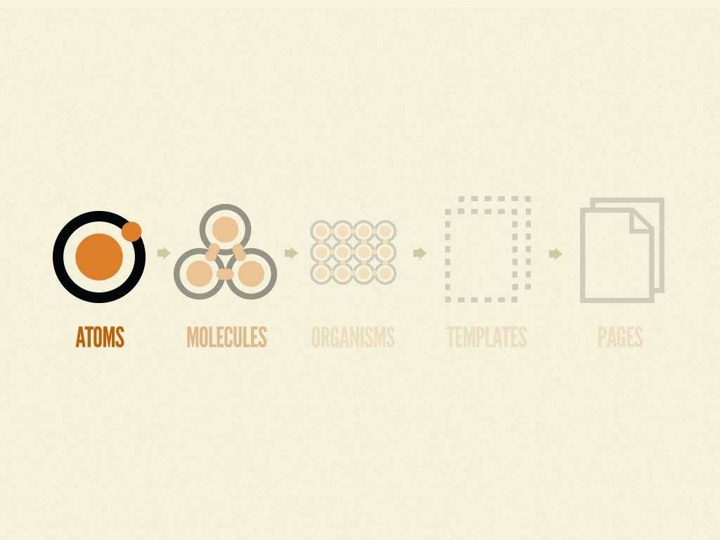 原子设计不是一个线性的过程, 它更像是一个心理模型,来帮助我们把用户界面看作是一个连贯的整体,同时也是一些元素的集合。这五个阶段的每一个阶段都会在我们的界面设计系统层级中扮演重要角色。现在,让我们更深入的了解每一个阶段。
