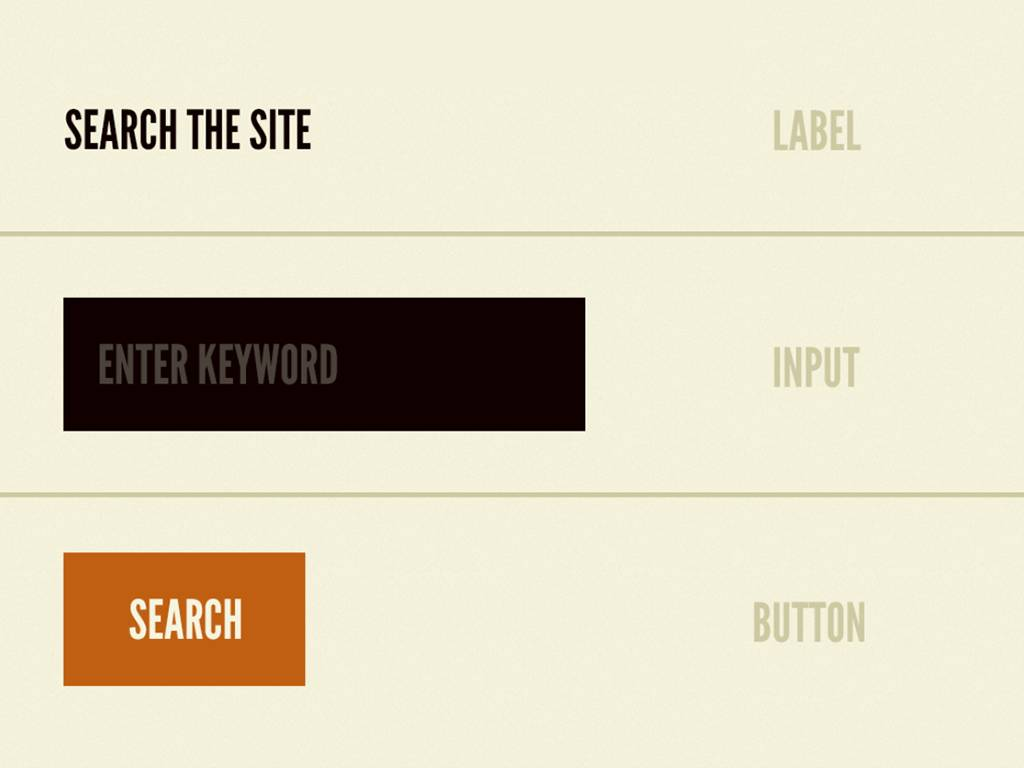 在合并后,这些抽象的原子突然就有了共同的目的。标签原子现在定义了输入原子。点击按钮原子现在可以提交表单。得到的结果是一个可以应用在任何搜索功能区的简单、便携、可重复使用的组件。