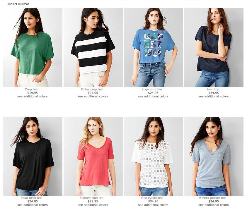 Gap电子商务网站上的产品网格有机体由相同的产品项目分子反复叠加而成的。