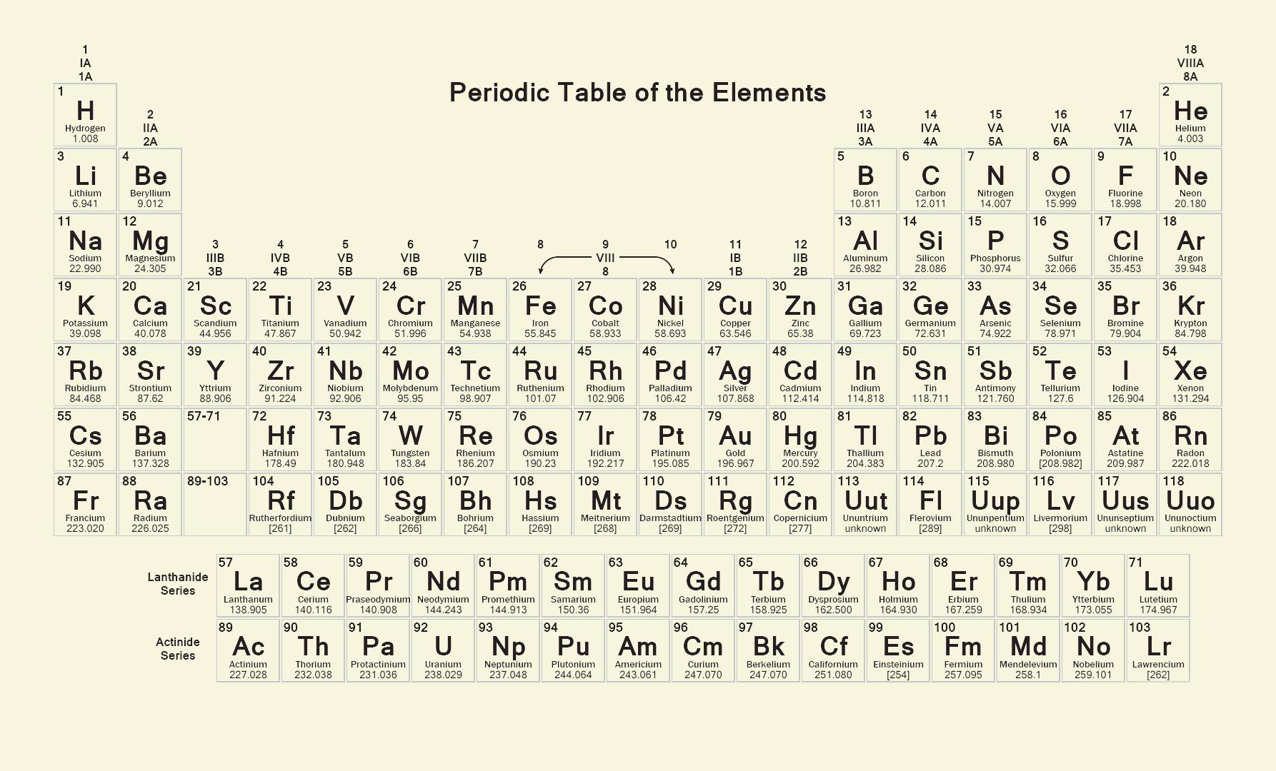 化学元素周期表。