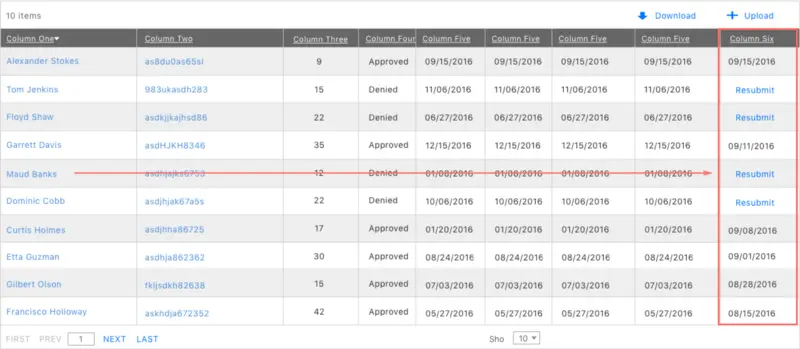There are some excellent UI suggestions by Andrew Coyle on designing better data tables. I’d highly recommend reading it for good interaction practices on tables.