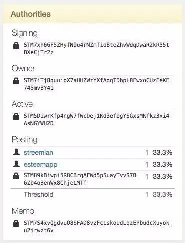 该技术还允许所有帐户都有一个可以做所有事情的“owner”权限组,和一个除了更改所有者组之外可以执行所有操作的“active”权限组。所有其他权限组均派生自“active”权限组。