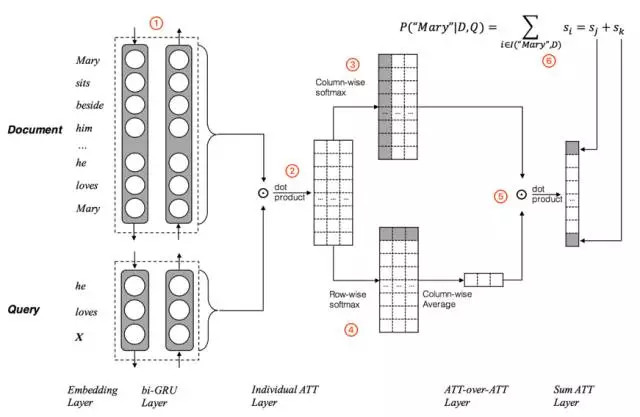 ▲ Attention-over-Attention Neural Network 的模型结构图