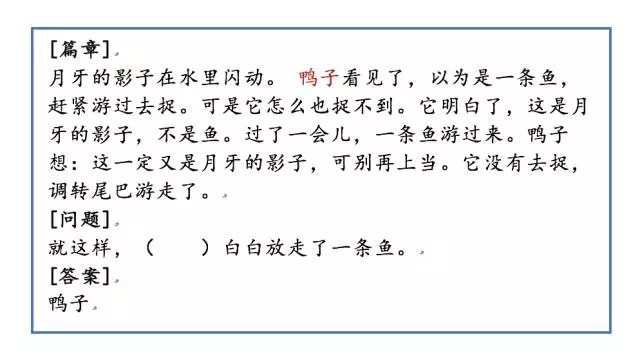 训练机器去阅读理解人类语言的方法,和训练人类阅读外语的方法有很多相似之处,其中一个重要的手段就是填空型阅读理解。机器会看到一段文本片段,并需要回答若干问题,问题的答案就出现在这段文本当中。例如: