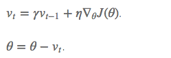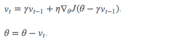用 θ−γv_t−1 来近似当做参数下一步会变成的值,则在计算梯度时,不是在当前位置,而是未来的位置上