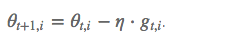 其中 g 为:t 时刻参数 θ_i 的梯度