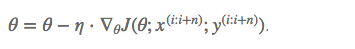 和 SGD 的区别是每一次循环不是作用于每个样本,而是具有 n 个样本的批次