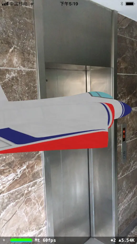 在你的设备上运行项目,如果没有异常的话应该能看见实时摄像头视频,还有一架飞机的 3D 模型,这个模型被放置在了物理空间中。