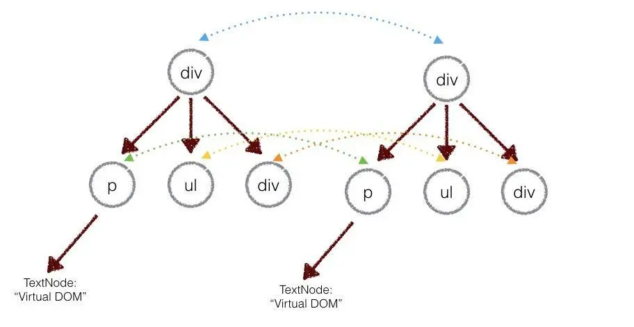 比较两棵DOM树的差异是 Virtual DOM 算法最核心的部分,这也是所谓的 Virtual DOM 的 diff 算法