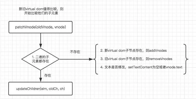非初始化更新数据就会调用patchVnode方法,也就是diff算法的核心部分,先看详解再解读 。