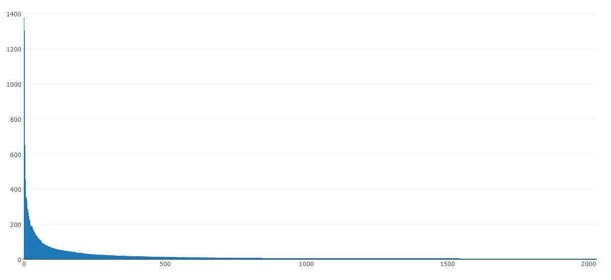 用户打赏次数分布,差异还是相当大的,但是有过打赏行为的用户占了34.4%,还是很高的比例了。