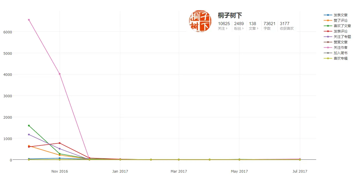 在本人主观定义的入口用户(见简书入口用户简单分析)中选取了8143名用户,爬取他们的时间线,获取全部动态进行可视化分析