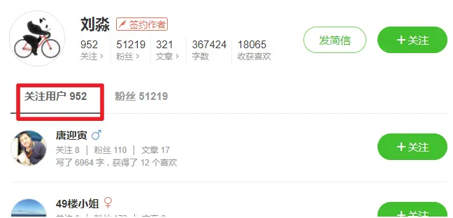 这里的入口用户定义为本人主观定义,主要重心放在优质内容生产者上,通过关注链获取,(有一个问题:对同一个用户网页版简书最多只能获取900个他关注的人,不过影响不大),欢迎讨论其他更好易行的定义方式。