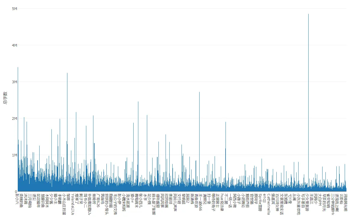 然而大多数作者之间并没有太明显的字数差异:
