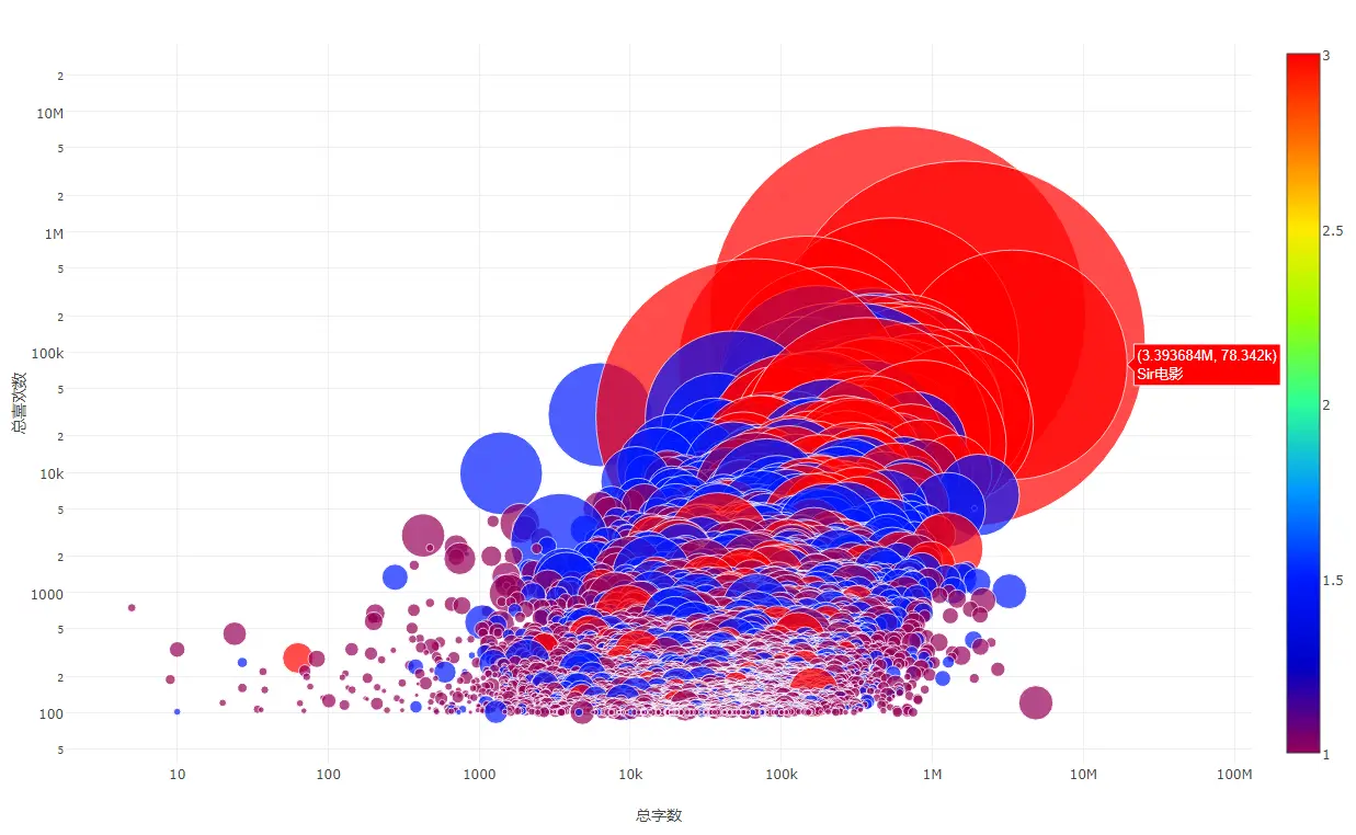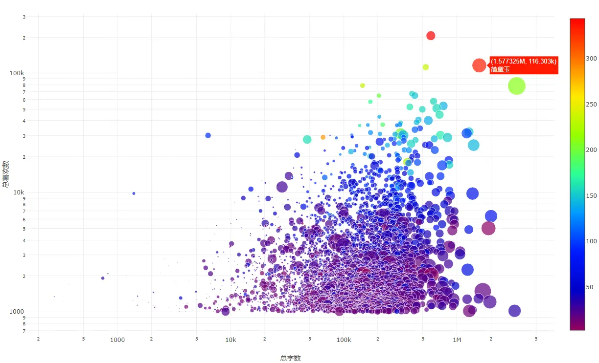 'xaxis': {'title': '总字数', 'type': 'log'},