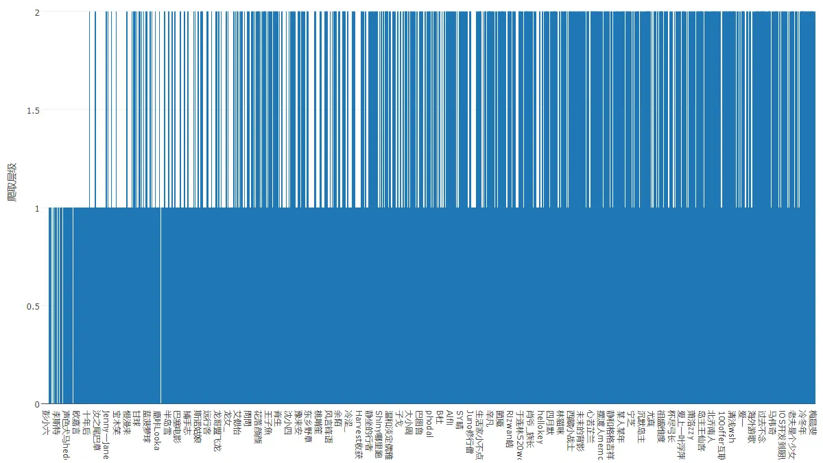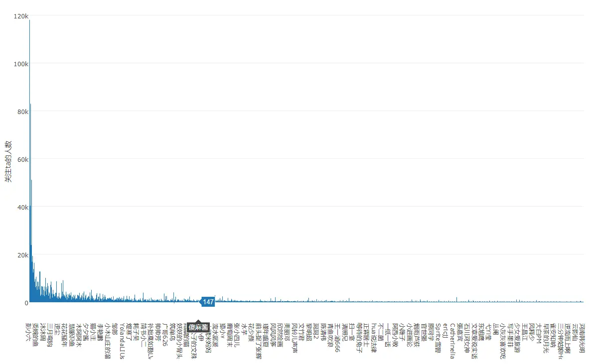 而通过爬取层级可以看出0级即推荐作者(最前面的白缝隙)大多位于最前列,1级即推荐作者的关注作者分布也相对靠前