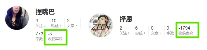 喜欢数为负的用户