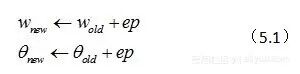 现在,我们把 ep的值带入公式( 5.1)所示的规则中,更新网络的权值和阈值,即: