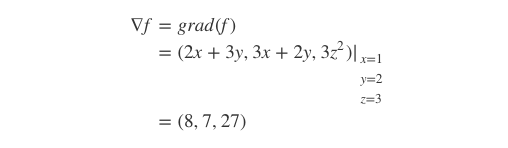 针对某个特定点,如点A(1, 2, 3),带入对应的值即可得到该点的梯度: