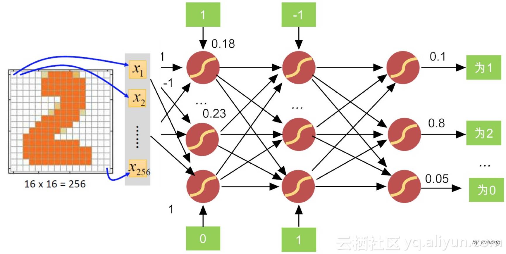 针对前馈神经网络的设计,输入和输出层设计比较直观。比如说,假如我们尝试判断一张手写数字图片上面是否写着数字“2”。很自然地,我们可以把图片像素的灰度值作为网络的输入。如果图片的维度是16×16,那么我们输入层神经元就可以设计为256个(也就是说,输入层是一个包括256个灰度值向量),每个神经元接受的输入值,就是规格化的灰度值。