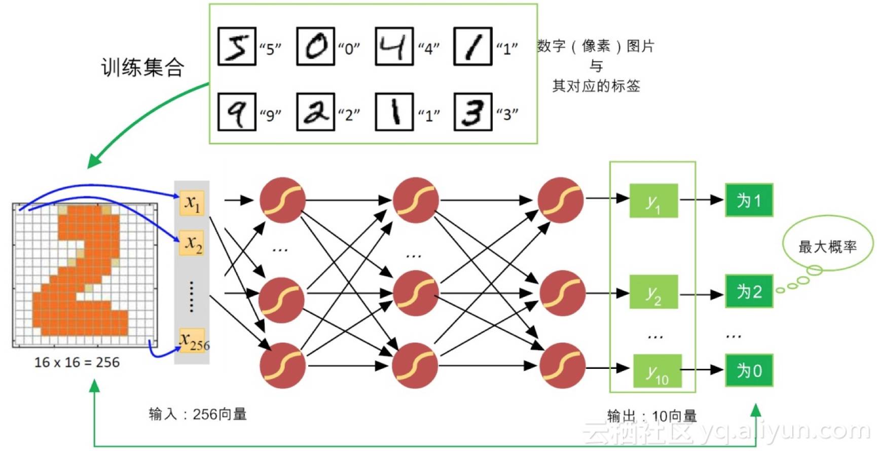 由于人们手写数字的风格不同,图像的残缺程度不同,输出的结果有时并不能“十全十美”,于是我们就用损失函数来衡量二者的误差。前面我们提到,常用的损失函数是: