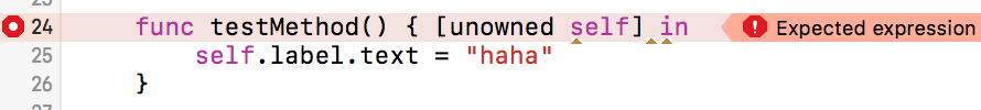 不是直接传入testMethod方法,而是在传入的闭包中调用自身的方法: