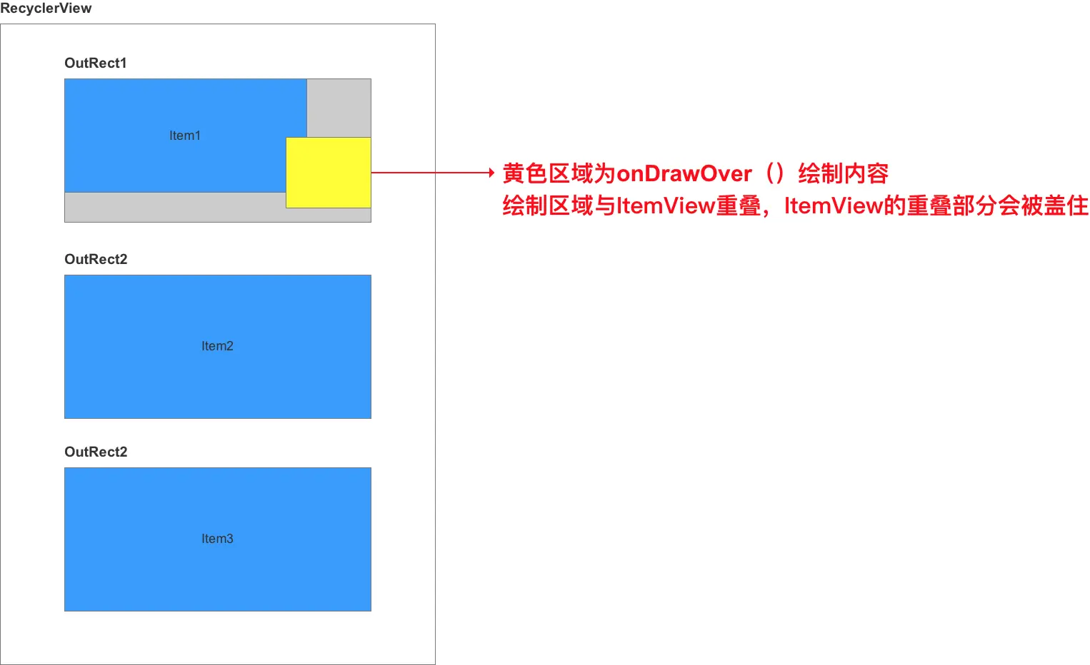 // 绘制图层在ItemView以下,所以如果绘制区域与ItemView区域相重叠,会被遮挡