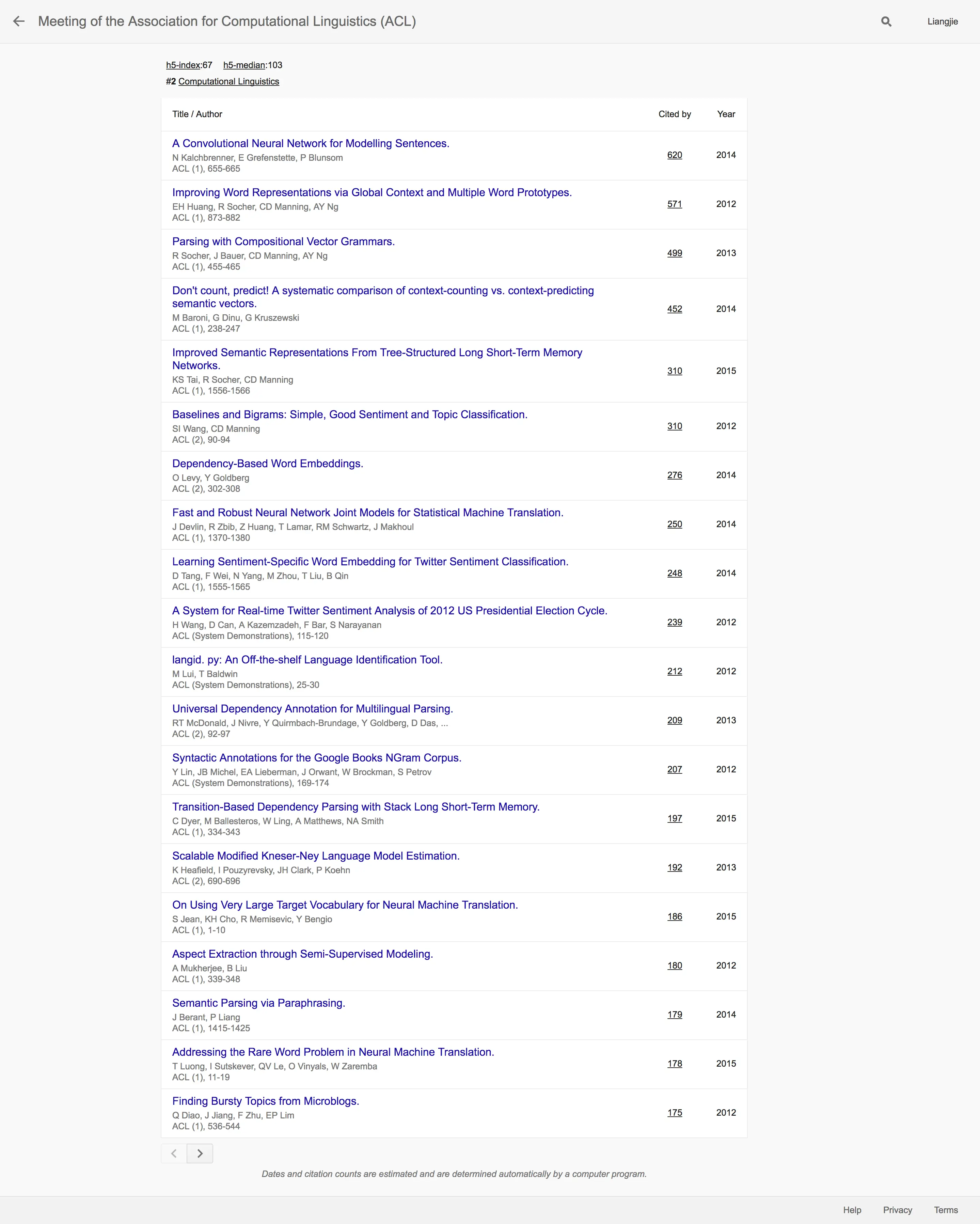 Efficient Estimation of Word Representations in Vector Space。从分布的情况上看,过去几年的大多数影响力大的文章主要分为在Word2Vec方面做文章,以及在Machine Translation或者Sequence Model方面做文章。排名第二第三的依然是NLP领域传统的旗舰会议ACL和EMNLP。