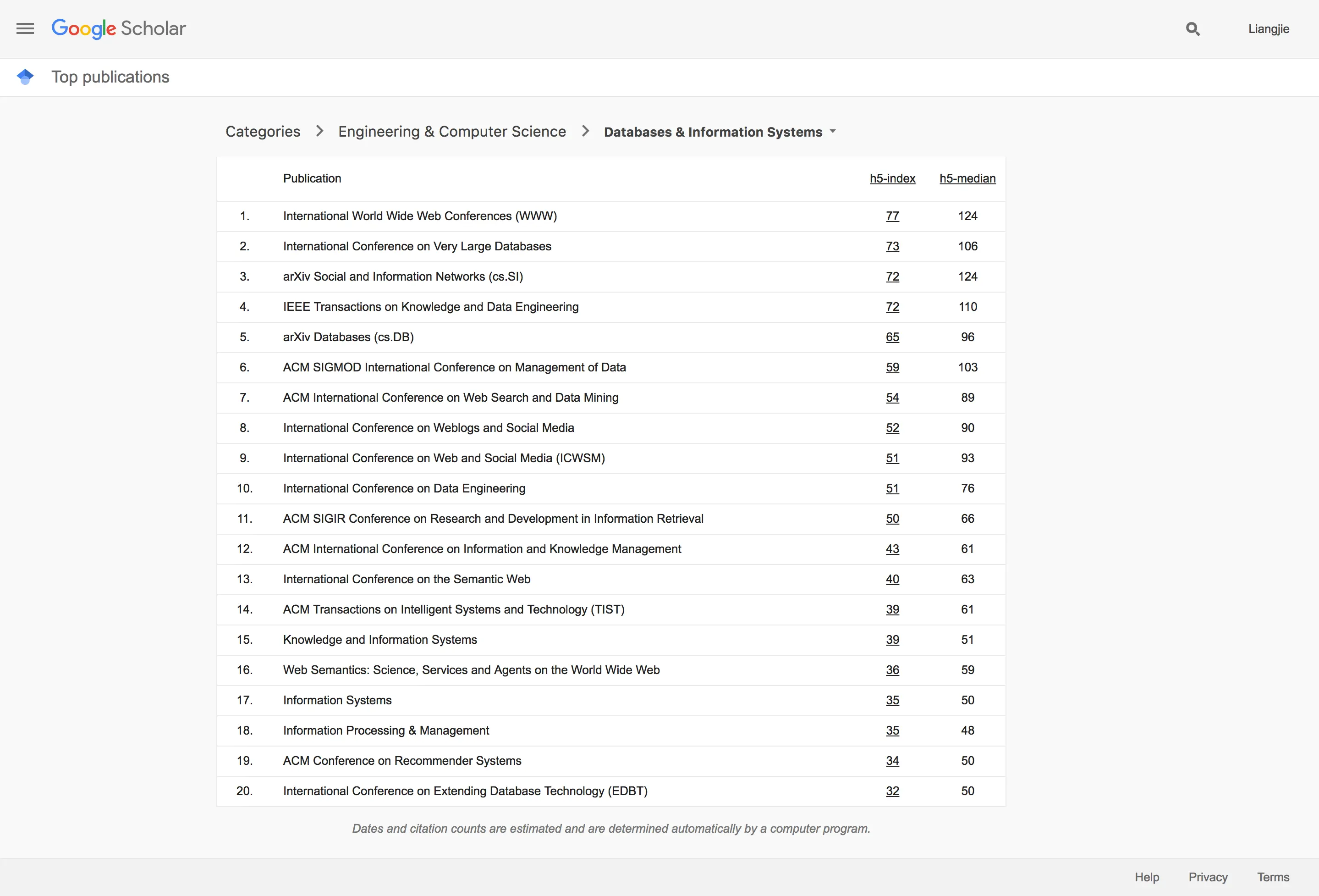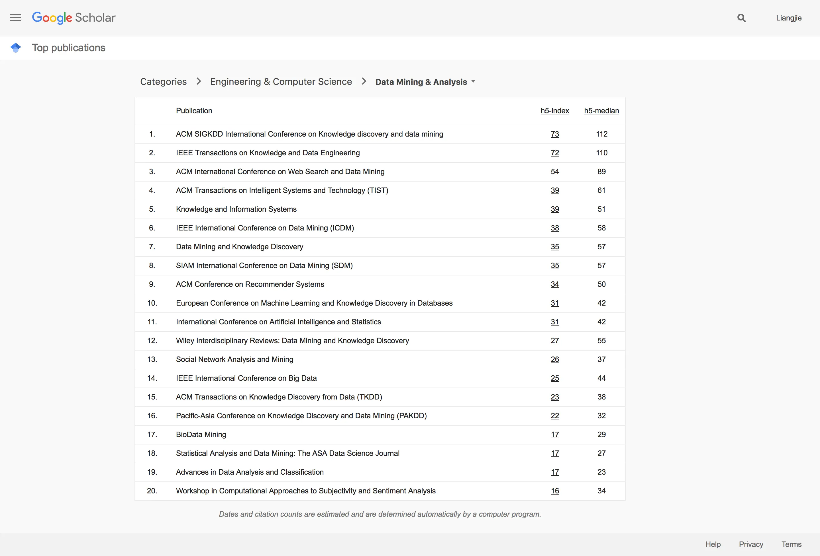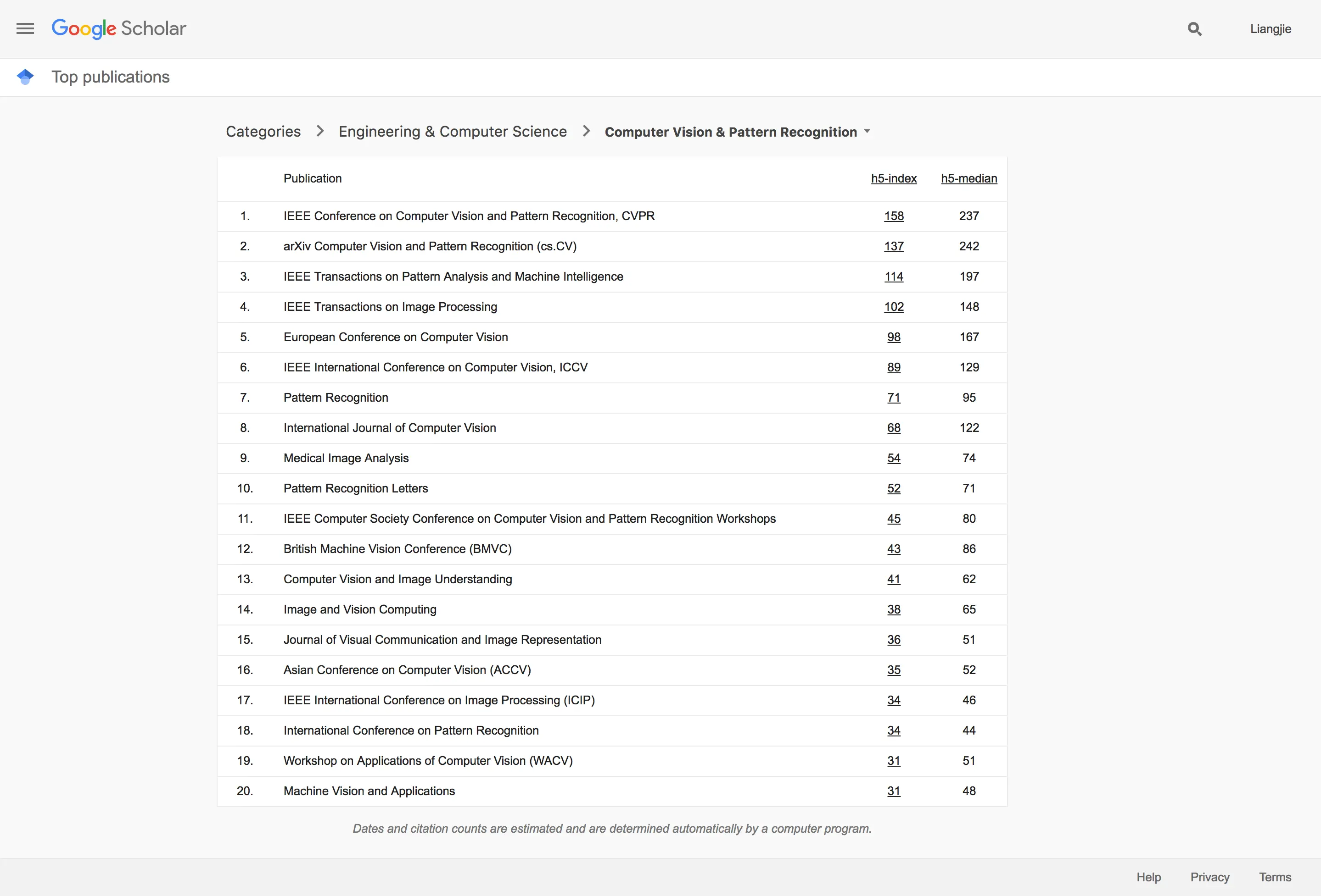 2017年 7月 9号近日,Google Scholar发布了一个2017年的“学术指标”,主要是对各个学科的众多领域的学术刊物(包括期刊、会议论文集以及在线论文出版集)做出了排名。这个排名主要是依靠H5-Index这一指标。我们在这篇文章里,对人工智能相关的领域学术出版刊物的排名进行一个简单的分析和导读。