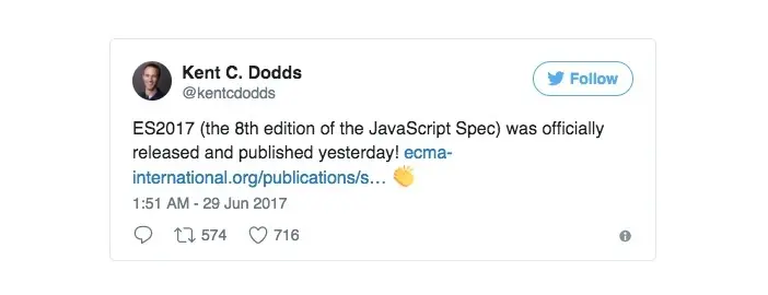 EcmaScript 8 or EcmaScript 2017 was officially released in the end of June by TC39. It seems that we are talking a lot about EcmaScript in the last year. It’s not for nothing. Currently the standard is to publish a new ES specification version once a year. ES6 was published in 2015 and ES7 was published in 2016, but did someone remembered when ES5 was released? It was happened in 2009, before the magical rise of JavaScript.