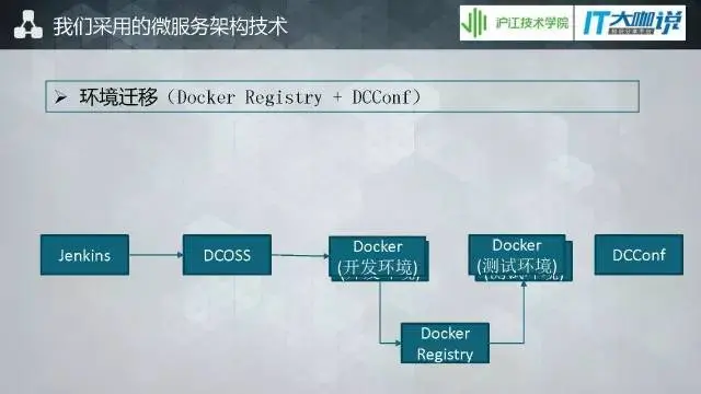 我们把开发环境上做出了一个镜像,然后把它推向docker registry,在测试环境里就可以把它拉下来,测试人员直接测。