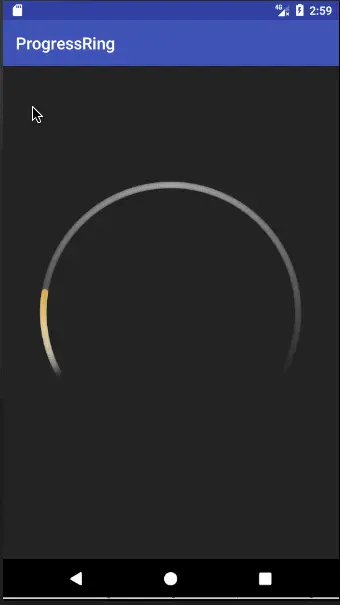 下面我们来为其加上动画,所谓动画,就是让其从进度为0开始画,一点点画到progress即可,我们设置一个变量curProgress来表示当前进度,当curProgress < progress时,curProgress自增,再调用postInvalidate()即可,具体完整代码如下所示。