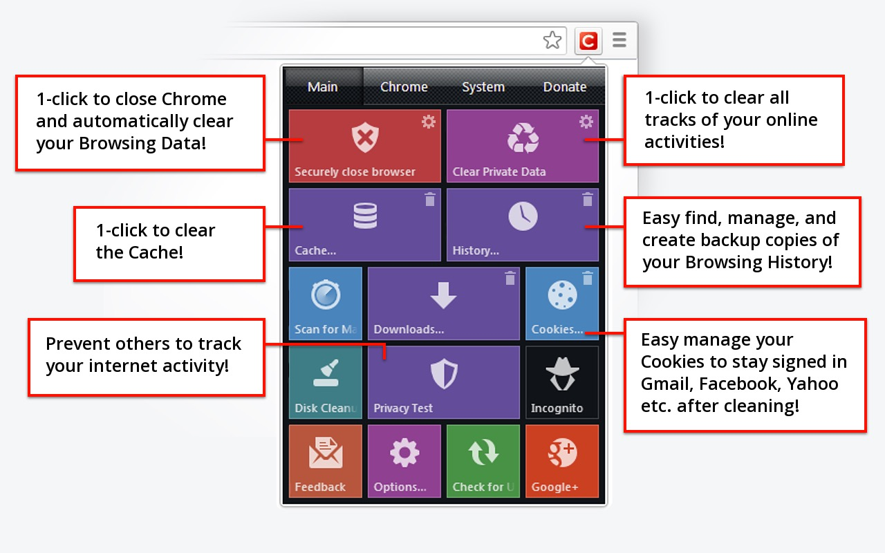 我们在使用浏览器的时候,其实会产生一堆数据,如浏览记录、缓存、私有数据、cookie 等等,当然,浏览器设置页面一般都可以手动设置与清理的,但是有点麻烦,每次都要一步步点进去,寻找对应的设置,而且对于普通用户更难找到,那么安装这个插件之后,则什么都搞定了,直接一个页面,点击下就可以清理对应的数据,非常方便,从此迈上使用 Chrome 的人工智能模式。