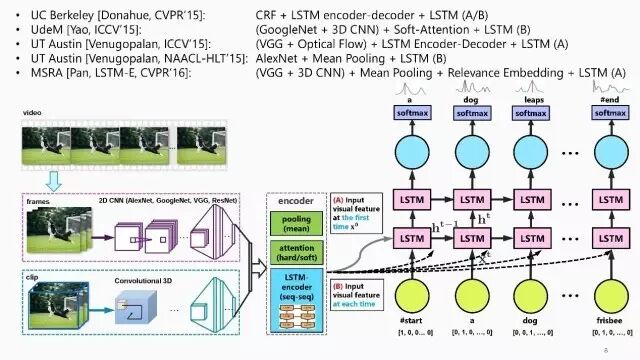 近年来,随着大量的视频数据库的开放,如"MSR Video Decription Corpus", "MSR Video to Language (MSR-VTT)", “ActivityNet”等,为这一领域的学术研究带来了长足的进步,同时也衍生出了一些新的研究方向,如VQA等。